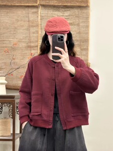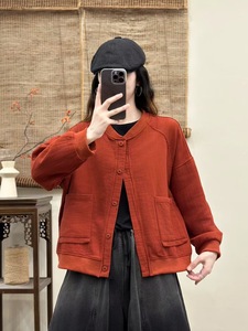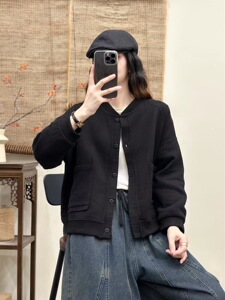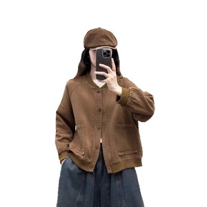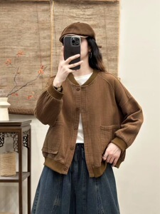 斜纹双层棉外套女 2025秋新款复古宽松纯色棒球领小个子开衫 9208