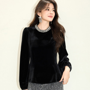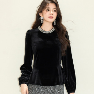2025秋季新款圆领钉珠长袖衬衫女设计感小众上衣2713