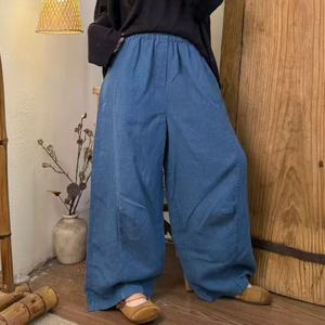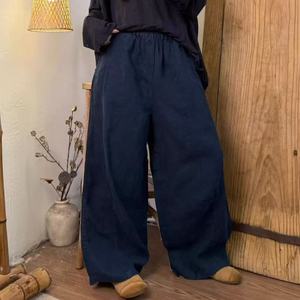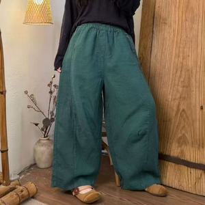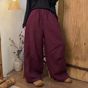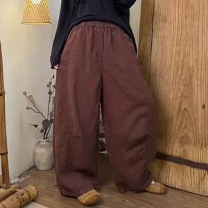 2025秋 韩版宽松复古时尚砂洗亚麻松紧腰弯刀裤百搭休闲裤女512-8