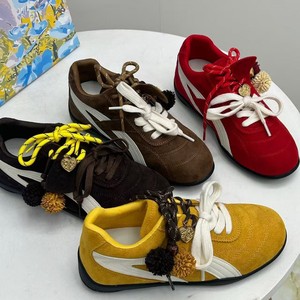 2025年秋季新款复古红色平底松果德训鞋内增高双系带轻便休闲鞋!