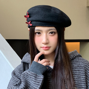 甜美可爱百搭蝴蝶结贝雷帽秋冬季休闲韩版大头围画家帽时尚报童帽