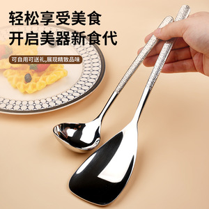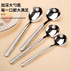 304不锈钢锤纹手柄勺西餐勺长柄分餐勺圆头勺吃饭勺公勺锤纹餐具