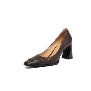 柔软头层羊皮通勤高跟鞋2025秋粗跟方头真皮浅口单鞋女大小码可退