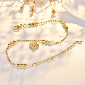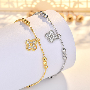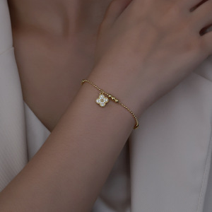 真金电镀四叶草满钻花朵手链女可调节卡扣设计感锆石手饰轻奢饰品