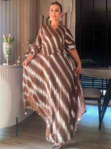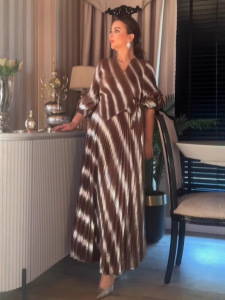 亚马逊2025欧美跨境夏季新款印花时尚收腰修身女装腰带衬衣连衣裙