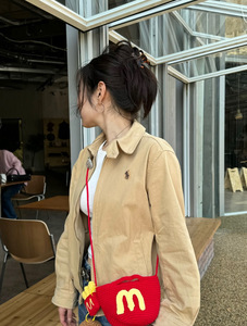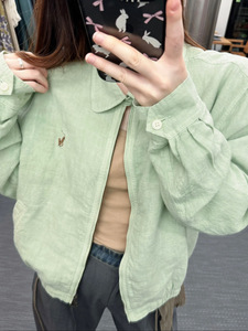 高版本RL拉夫浅杏色老钱风夹克小马刺绣经典百搭棉麻糖果色外套