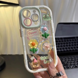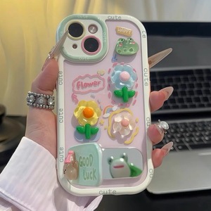 青蛙花公仔支架适用苹果16promax手机壳泡芙可爱贴件17手机保护套