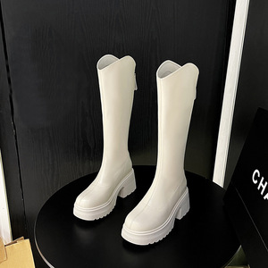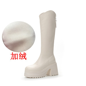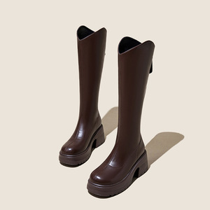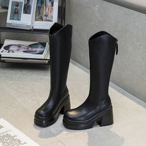 10cm高跟长靴女2025秋季新款小个子增高长筒靴厚底粗跟高筒骑士靴