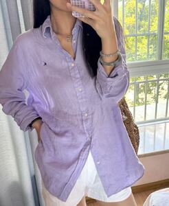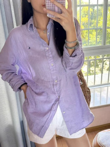 现货高版本RL拉夫刺绣小马标亚麻衬衫夏季新款衬衣上衣男女同款