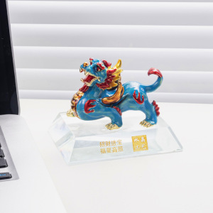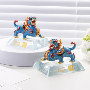 国潮创意水晶家居风水摆件鸿运画油貔貅迎财办公室桌面装饰珐琅彩