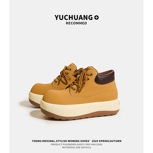 丑萌大头马丁靴女秋季新款英伦风复古大黄靴时尚厚底短靴女款