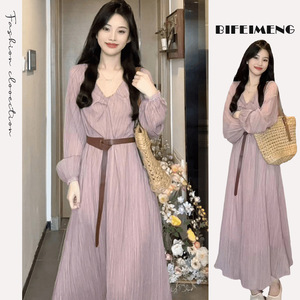 法式温柔风气质长袖连衣裙子女春季2025新款高级感超好看秋冬长裙