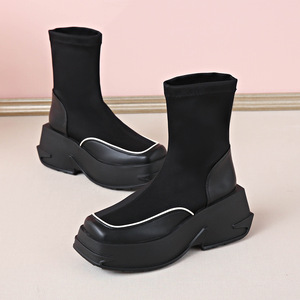 马丁靴女2025年新款粗跟瘦瘦短靴女厚底飞织秋冬百搭时尚一脚蹬