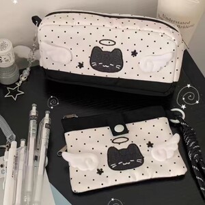 天使恶魔黑色波点猫咪笔袋高颜值容量学生文具收纳袋铅笔盒卡包