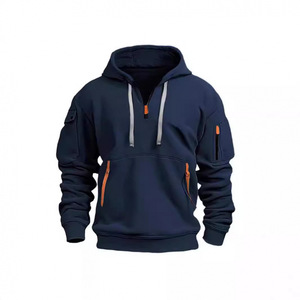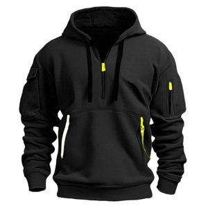 2024跨境秋冬男士运动休闲卫衣连帽套头衫拉链多口袋男士卫衣外套