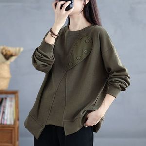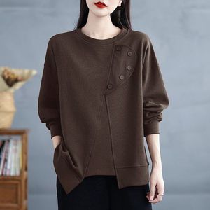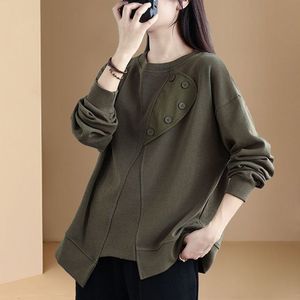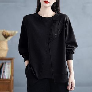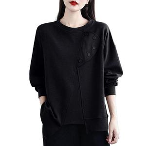 春秋新款圆领纽扣不规则女士设计感长袖卫衣宽松大码洋气上衣服潮