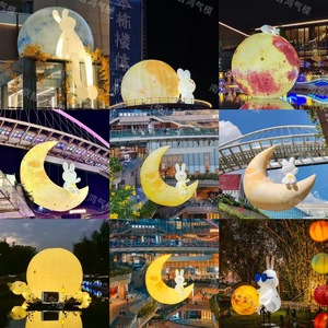 中秋兔子气模趴墙宇航员兔子国庆月饼云朵商场美陈七夕登月