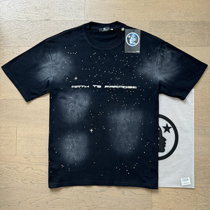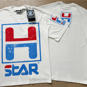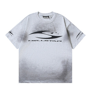 跨境美式潮牌地狱之星洗水做旧字母宽松青年短袖街头T恤男女同款