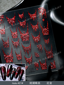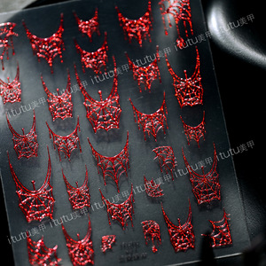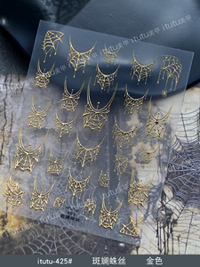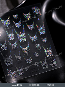 itutu新款斑斓蛛丝烫金浮雕美甲贴纸暗黑风万圣节幻彩小蜘蛛网421