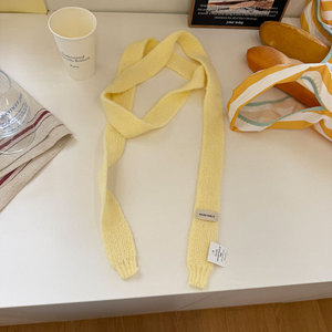 韩系纯色软糯细窄长条围巾女针织毛线2025新款高级感y2k围脖潮款