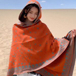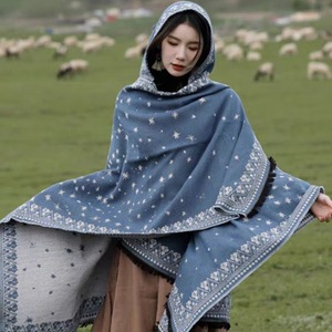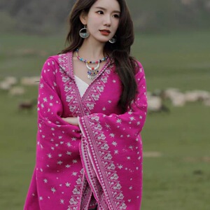 青海沙漠草原旅游穿搭披肩女新疆防晒茶卡盐湖民族风旅行斗篷外套