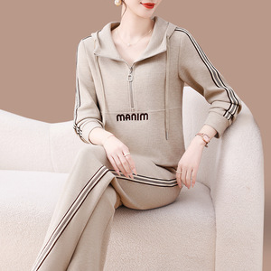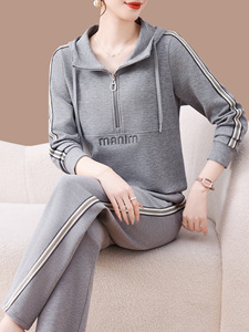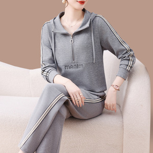 早秋卫衣运动套装女2025新款春秋中年妈妈时髦洋气休闲连帽两件套