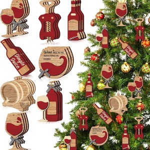 24 件 圣诞酒瓶 饰品木制 圣诞葡萄酒木挂饰 圣诞树装饰悬挂派对