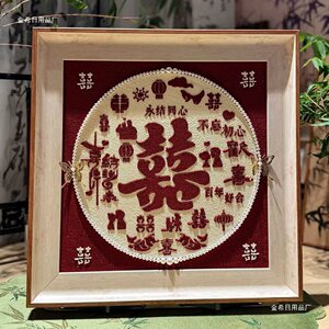 37*37cm-【胡桃色边框】花喜肌理画成品