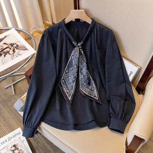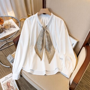 一整套入秋穿搭大码胖mm高级感轻奢飘带衬衫半身裙显瘦遮肚套装女
