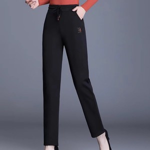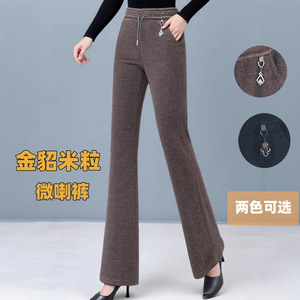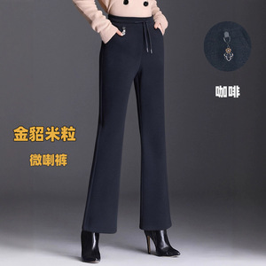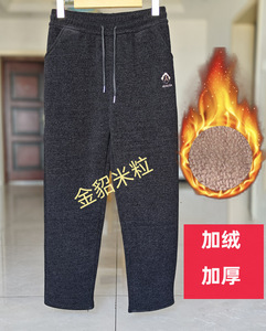加绒加厚秋冬金貂米粒女裤中老年保暖高腰休闲直筒裤女长裤妈妈裤