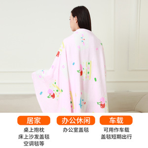 多功能法兰绒印花休闲毯宿舍办公室午睡空调毯沙发盖毯披肩斗篷