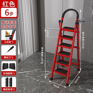 升级铝合金踏板(红色六步)加固加厚-家用梯✓♢