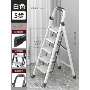 升级铝合金踏板(白色五步)加固加厚-家用梯✓♢
