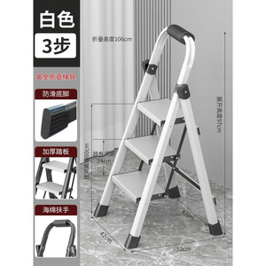 升级铝合金踏板(白色三步)加固加厚-家用梯✓♢