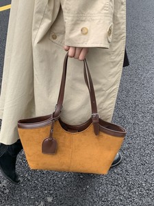 韩版麂皮绒手提菜篮子包女2025秋冬新款复古托特包时尚单肩腋下包