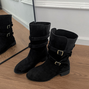 女王范卡其复古粗跟中筒靴子女款2025新款秋季配裙子显瘦西部靴