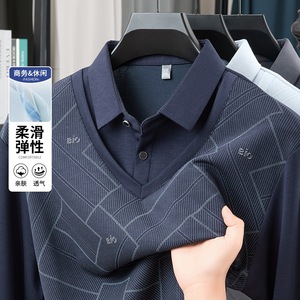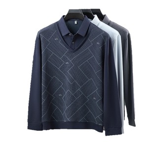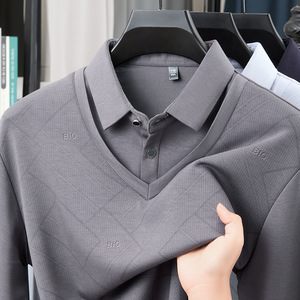 一件代发中年男士假两件上衣宽松翻领长袖T恤男式打底衫秋款衣服