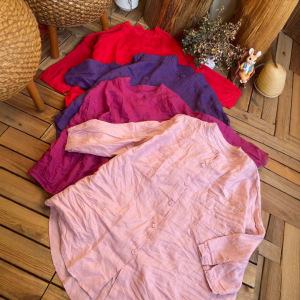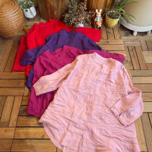 亚麻衬衫 2025 秋新款文艺风圆领宽松休闲衬衫韩版气质衬衣