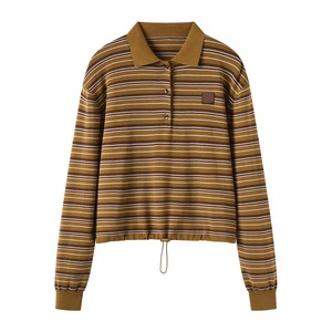 现货2025秋季新款宽松百搭休闲显瘦撞色POLO领条纹针织衫3J3E436