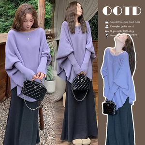 孕妇装2025秋季新款韩版时尚蝙蝠袖+针织半身裙 孕妇套装