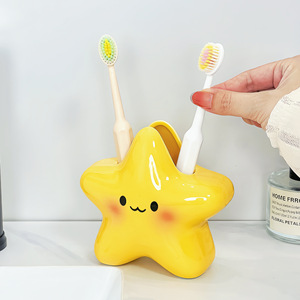 卡通星星牙刷架家用卫生间浴室可爱手动牙刷架创意陶瓷牙膏收纳架