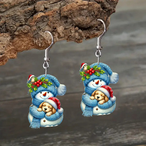 跨境新款圣诞老人耳环平面亚克力创意圣诞节圣诞老人抱狗狗耳饰
