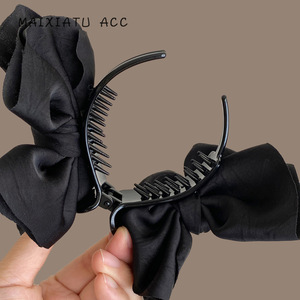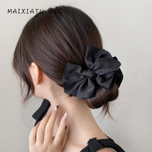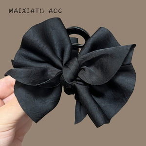 赫本纪事丸子夹2025新款黑色简约蝴蝶结显发量懒人丸子头抓夹发饰