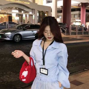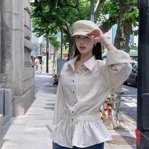 秋季长袖2025新款时尚条纹气质显瘦衬衣收腰衬衫上衣超仙蓝色条纹