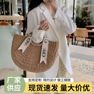 法式草编包ins编织手提包夏季沙滩包百搭网红女包森系海边度假包