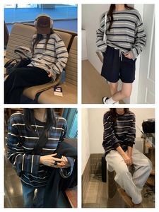 现25春秋慵懒韩系复古长袖evermore条纹T恤衫休闲宽松赵露思同款