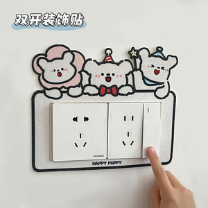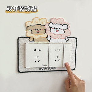 卡通开关边框套自粘贴家用插座面板遮挡儿童房间灯双开开关装饰贴