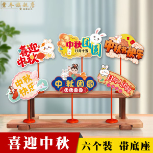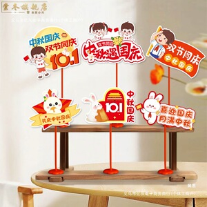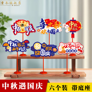 中秋节国庆节装饰品桌面摆件拍照手举牌商场前台氛围活动场景布置