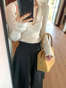 v领翻领内搭打底衫女秋冬季薄款羊毛毛衣长袖针织衫修身紧身上衣