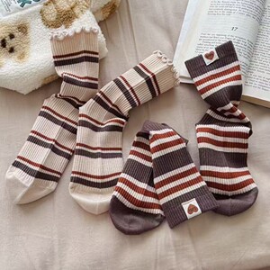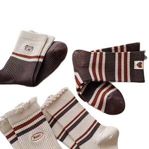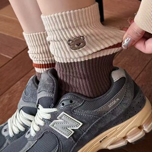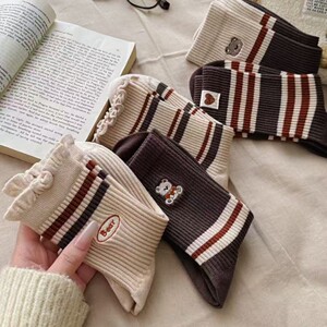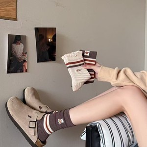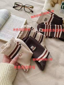 秋冬保暖加厚咖色袜子纯棉堆堆袜女春秋款无骨中筒袜复古美拉德长